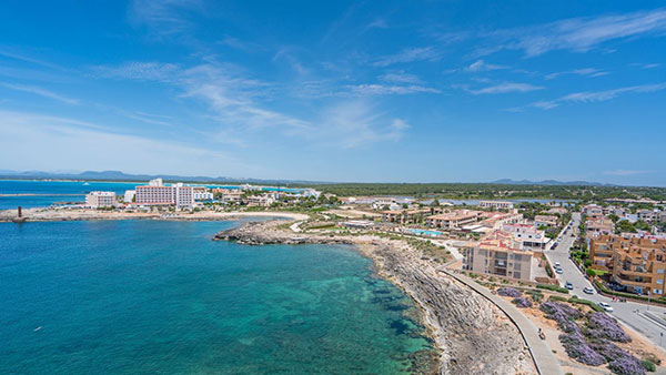 This former fishing village belongs to the municipality of Ses Salines. The fishing industry lost its importance. But the old fishing harbour still exists. Now filled with tourist boats going to Cabrera. Today, tourism is the main source of income. Tourists come from all over the world. Families, nature lovers and the active tourist enjoy this place. In the area are some beautiful beaches. It has the only hot springs on Mallorca. The islands of Cabrera are only 10km away and access to Natural Park Mondrago is easy. Colonia de Sant Jordi is a mix of traditional stone houses and modern high buildings. Like many resorts in the South and South East it is busy in summer and very sleepy in winter.