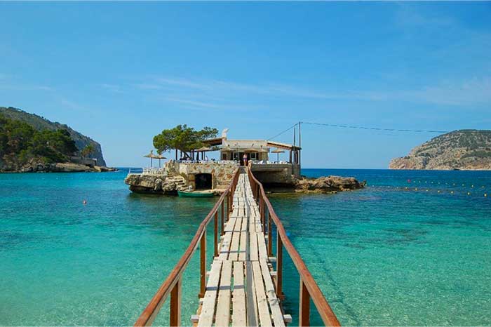 Located on the southwest coast of Majorca, Cala Portals is a small cove with crystal clear water and surrounded by lush greenery. It’s an excellent spot for families because it’s sheltered from waves and has shallow water, making it perfect for children to play in. It’s also an ideal spot for couples to unwind. This secluded beach is also a perfect base for scuba diving or snorkelling during good weather conditions.